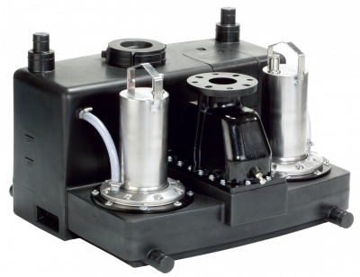 Kompakt, tilslutningsklart og fuldt neddykket dobbeltpumpe-løfteanlæg til pumpning af fækalieholdigt spildevand.
